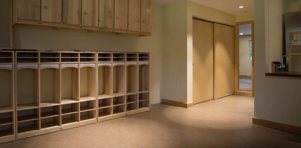Construction of the Early Childhood Learning Center (ECFE) addition, located at the Tamarack Nature Center, included two new indoor classrooms with fully functioning kitchens and classroom bathrooms. In addition to the 320 acres of outdoor classroom, the ECFE and preschool programs have access to the new “Backyard” and “Cove” outdoor play and learning spaces, directly connected to their indoor space.